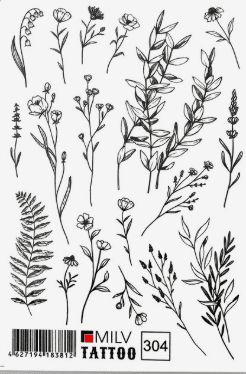 Татуировка на тело «Разные травинки» 5,3*6,3см.