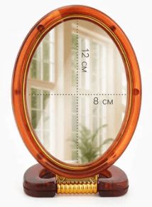 Овальное двустороннее зеркало с увеличением x2 в янтарной оправе сочетает функциональность и стиль. Размер зеркальной поверхности 8×12 см подходит для детального ухода за внешностью. Конструкция на подставке обеспечивает удобство использования на столе, а возможность настенного крепления расширяет варианты размещения.